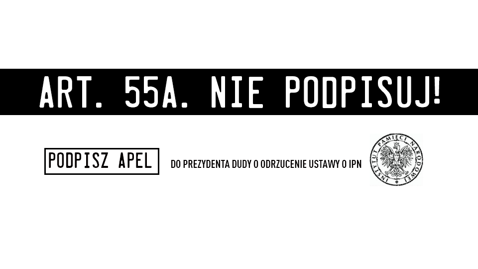 Panie Prezydencie, zwracamy się do Pana z apelem o nie podpisywanie nowelizacji ustawy o IPN. Ta ustawa powstała na doraźne zapotrzebowanie polityczne. Przepisy tej ustawy wskazują, że wcale nie chodzi w niej o zwalczanie mylnego określenia „polskie obozy”, nie ma w niej o tym słowa! Jej efektem będzie cenzurowanie niewygodnych wypowiedzi oraz wzmocnienie antysemickich i ksenofobicznych nastrojów w Polsce – do czego nie powinien Pan przykładać ręki.